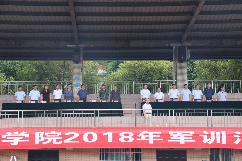 党委书记刘波,院长江洪,副院长梁先勇、文斌、刘仲全,纪委书记朱传书,武警重庆总队一支队教导员毛义菲上尉,学生工作部、教学工作部负责人,各系主任、党总支书记出席大会。全体军训教官和2018级新生身着迷彩服列队参加。大会由文斌同志主持。
