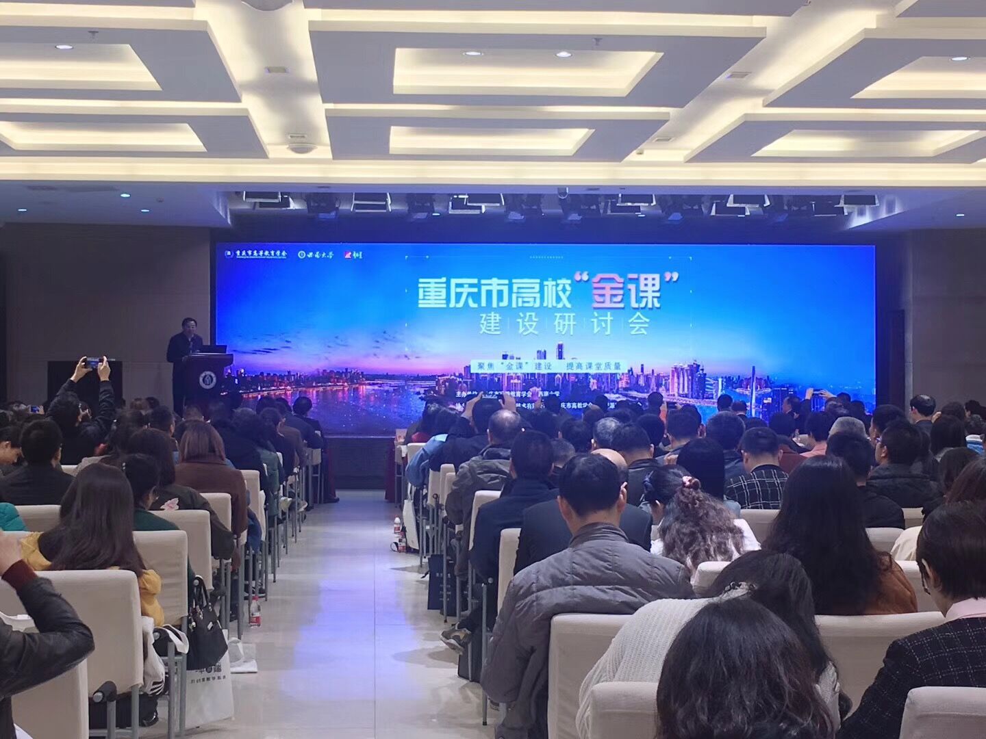 委派教学工作部徐伟、陈中耀、图文信息中心梁修荣、旅游管理系幸亮4名教师参加了由重庆市教育学会主办的重庆市高校“金课”建设研讨会。60余所在渝高校领导、教学管理部门负责人和一线教师共400余人出席研讨会。