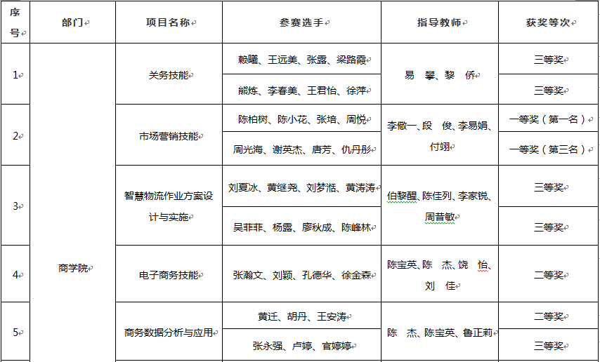 日前,由重庆市教育委员会、重庆市人力资源和社会保障局主办的“巴渝工匠”杯重庆市第十二届高职院校学生职业技能竞赛圆满落下帷幕。我院共派出37个代表队参加19个项目的比赛,经过激烈的角逐,我院学子再获佳绩,荣获19个项目,共计34项奖项(一等奖4个、二等奖8个,三等奖22个),其中3个项目进入国赛,参赛项目100%获奖。特向全院师生报喜,并向获奖选手和指导教师表示衷心祝贺!