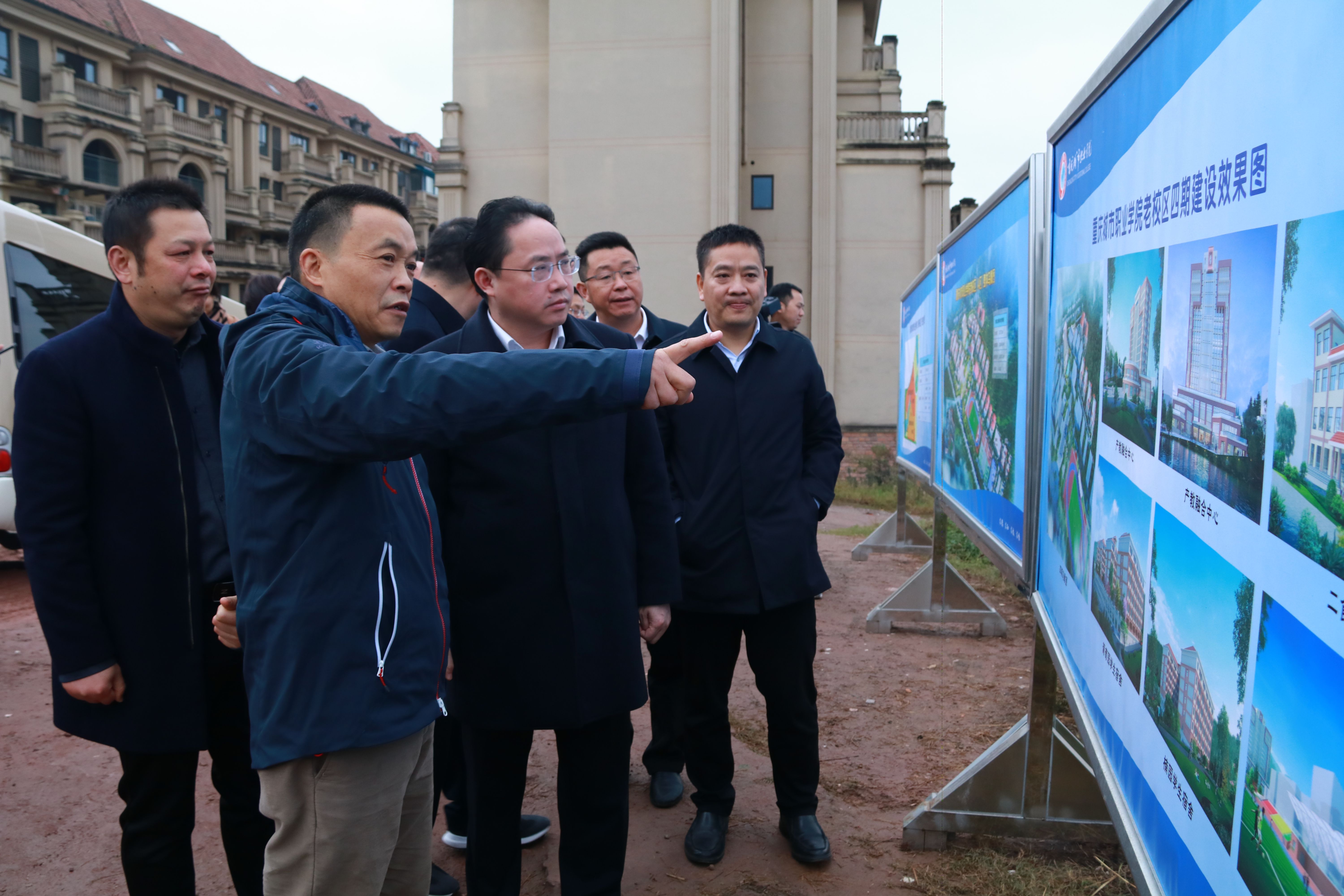 11月25日下午,永川区委副书记、区政府区长张果,区委常委、统战部长、高新区党工委书记宋文一行就学校新征482亩扩建用地进行现场调研,在家校领导陪同调研。