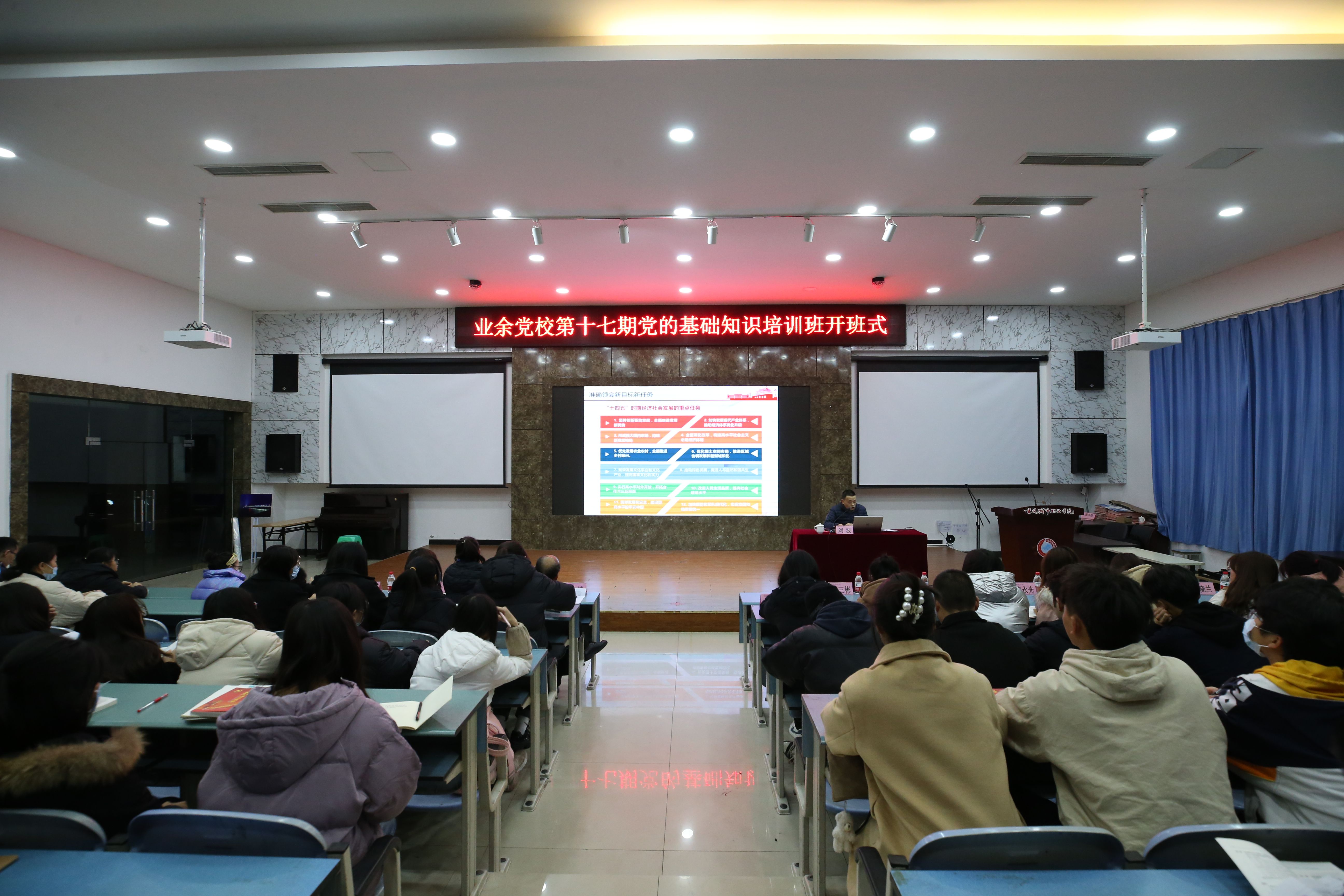 为帮助入党申请师生加强对党的基本知识、基本理论、基本路线、基本方略的认识和理解,进一步提高发展党员质量。12月7日晚上,业余党校第十七期党的基础知识培训班在学术报告厅开班,党委书记、业余党校校长刘波出席开班式,党委委员、副校长、业余党校副校长文斌主持开班式。各院系级党组织书记、机关党总支部书记、专职组织员和1班全体学员参加开班式。