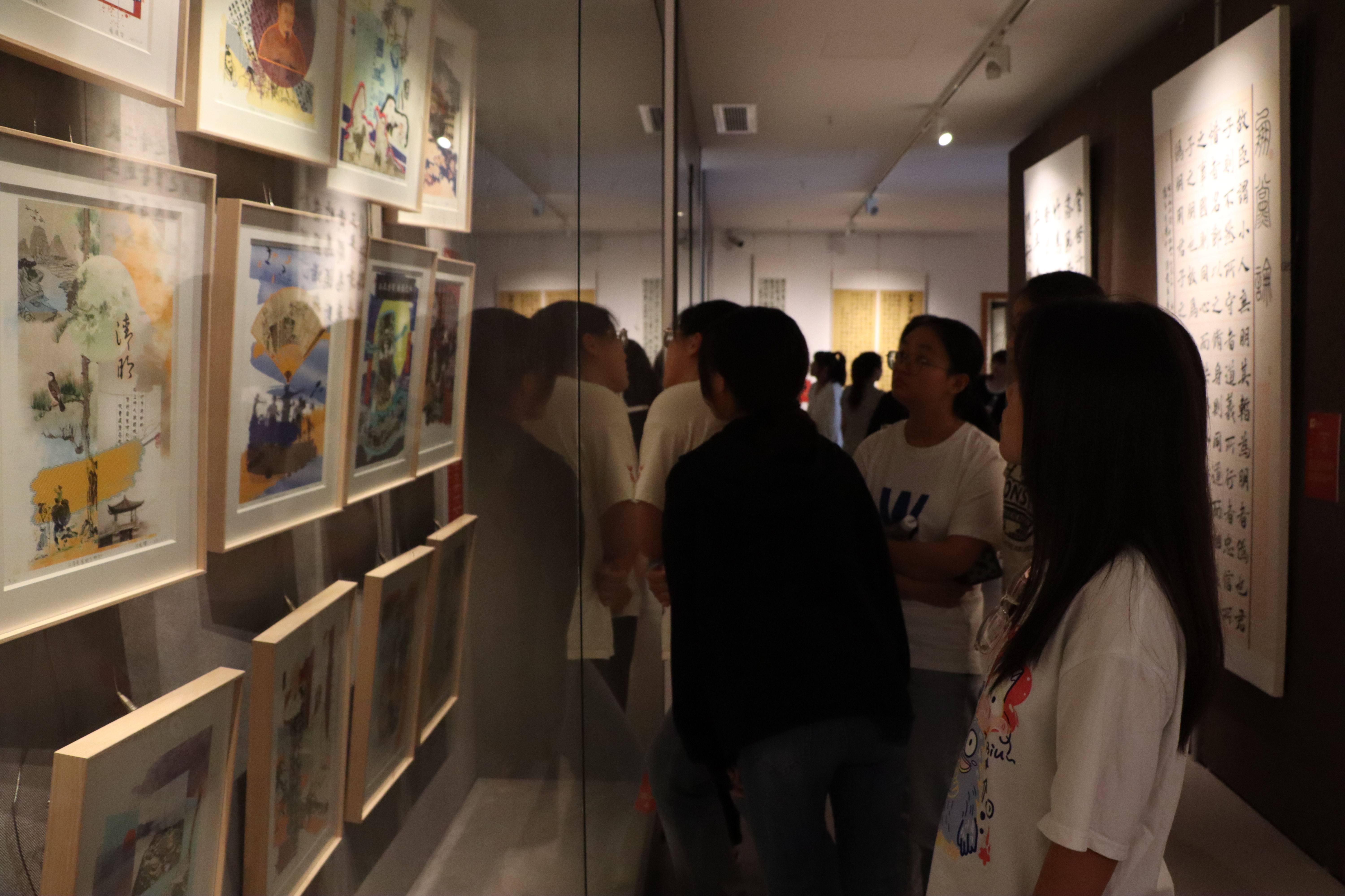 师生们在解说员的带领下,在一幅幅书法、书画作品前认真聆听、驻足观看、探讨交流,详细了解每幅作品的创造情况并仔细感悟蕴含其中的艺术魅力和廉洁意蕴。